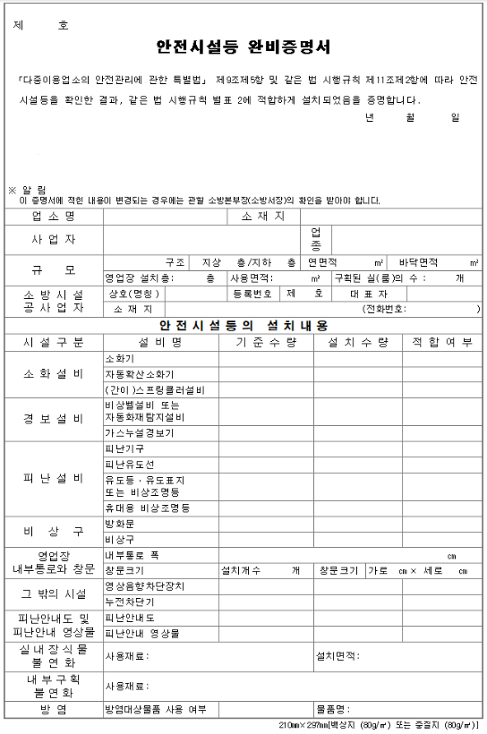 전기안전점검 확인서 다중이용시설 전기 필증 다중이용시설이라 함은 법령에 의거 다중이 이용하는 시설(공간)